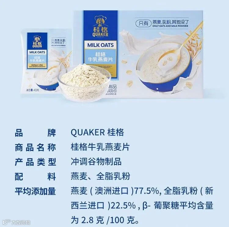桂格牛乳燕麦片(β-葡聚糖含量2.8克/100克)