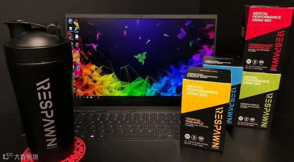 Respaw是雷蛇旗下的饮料混合物,成分包括维生素B、胆碱,绿茶提取物和生姜,有助于增加注意力,反应时间和精神耐力,目前的口味有青苹果,热带菠萝,石榴西瓜和蓝莓。