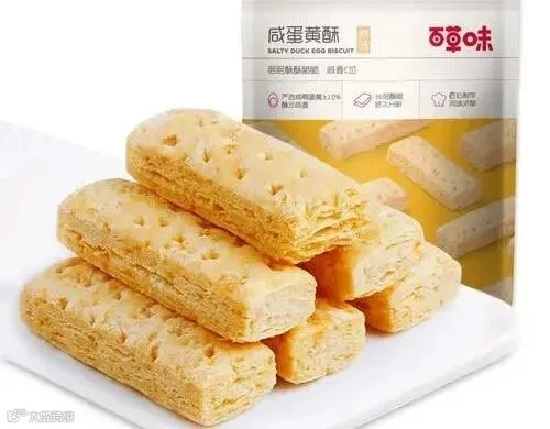 因为是咸蛋黄酥,以为会咸味比较重,吃起来会有点甜味,但是感受不了咸蛋黄的味道,一吃进嘴里,反而感受到很浓郁的蛋卷味!这款的优秀之处在于饼干的分层特别多,隐约还能看到咸蛋黄粒,酥松的感觉吃起来口感也还不错。