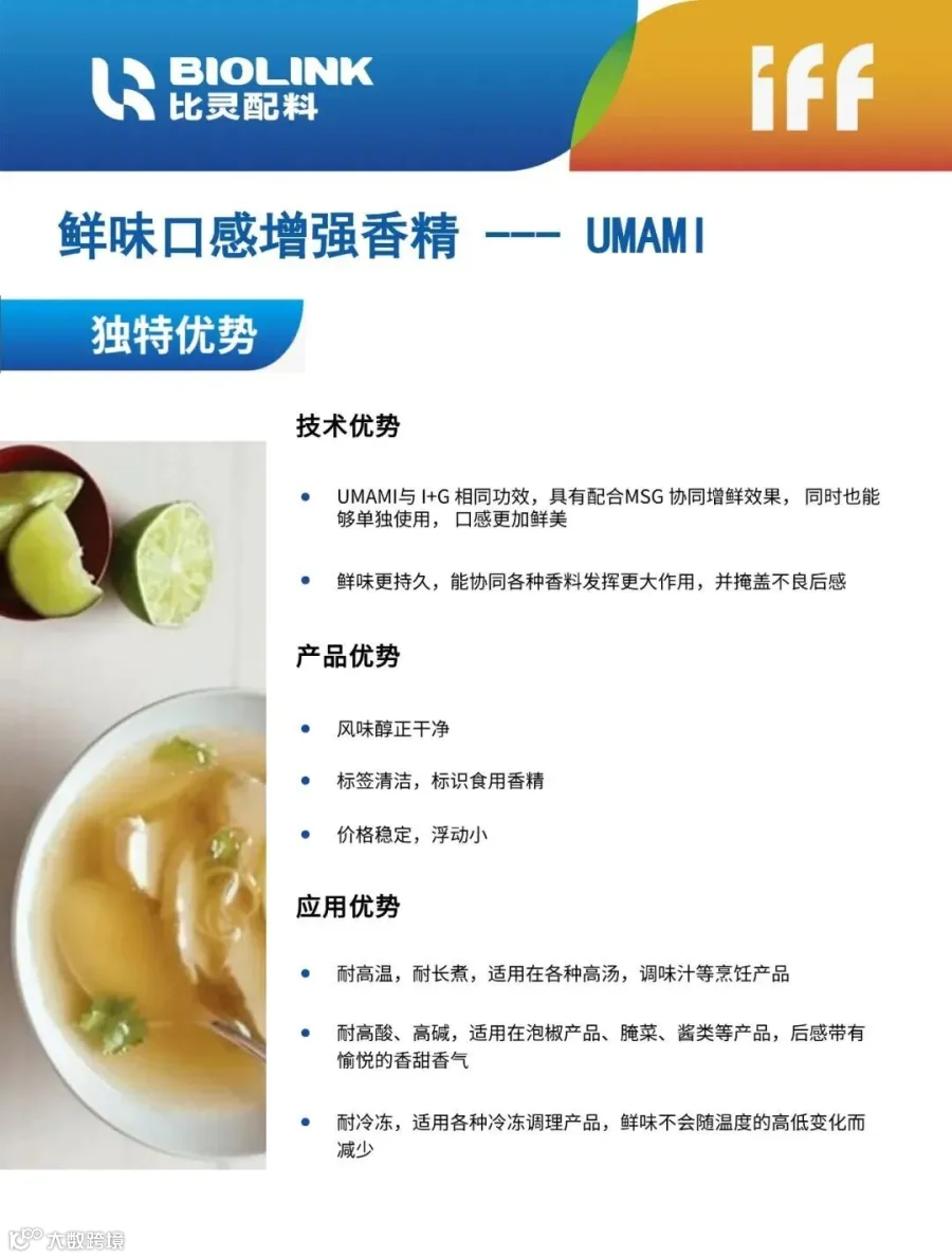 为此,比灵配料携手IFF UMAMI鲜味口感增强香精系列,为您呈现诸如泡椒肥牛、四川火锅、鸡肉风味等等富有广泛群众基础的风味,犹如八大菜系大厨现场烹制。