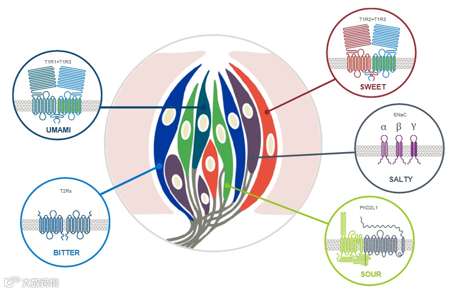 在显微镜下,人类的舌头就像一个星球的表面,镶嵌着许多坑洼不平的小突起。这些小突起遍布有重要的味觉感受器——味蕾,负责感知5种基本的味觉:咸、酸、甜、苦、鲜,其他味觉由这五种综合而成。
