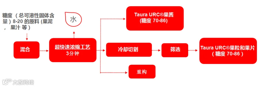 通过URC技术--世界领先的超快速浓缩技术,得以把水果保存得更完整和天然风味,而且耐于高温烘烤,不易褐变和丧失风味。水活度也控制得超低。