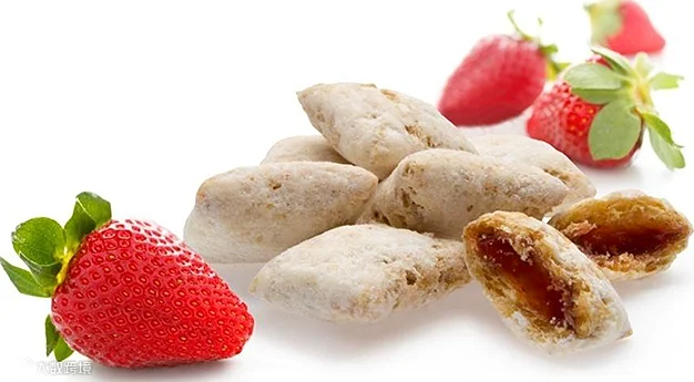 Taura 0添加水果酱的水分活度约0.6 ,与其他干性配料相似,水分迁移极慢,能够保留产品的干脆口感,保证产品质量和安全,使得创新应用越来越多,范围也越来越广。目前在常规的谷物类食品、坚果类食品、膨化食品、五谷杂粮等食品中广泛应用。