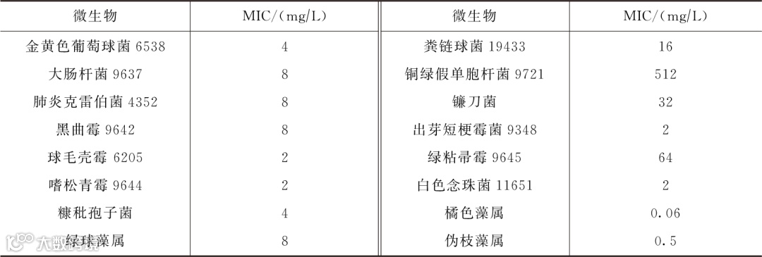 对微生物的最低抑制浓度