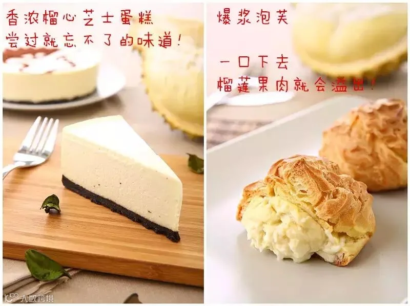 芝士蛋糕和泡芙榴莲香味满溢,让人不能随便放弃!