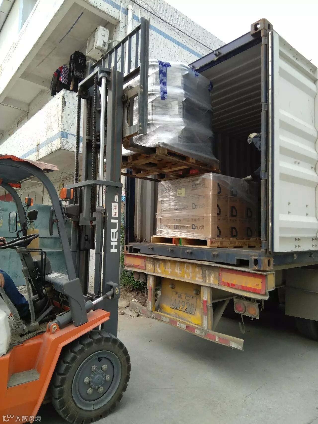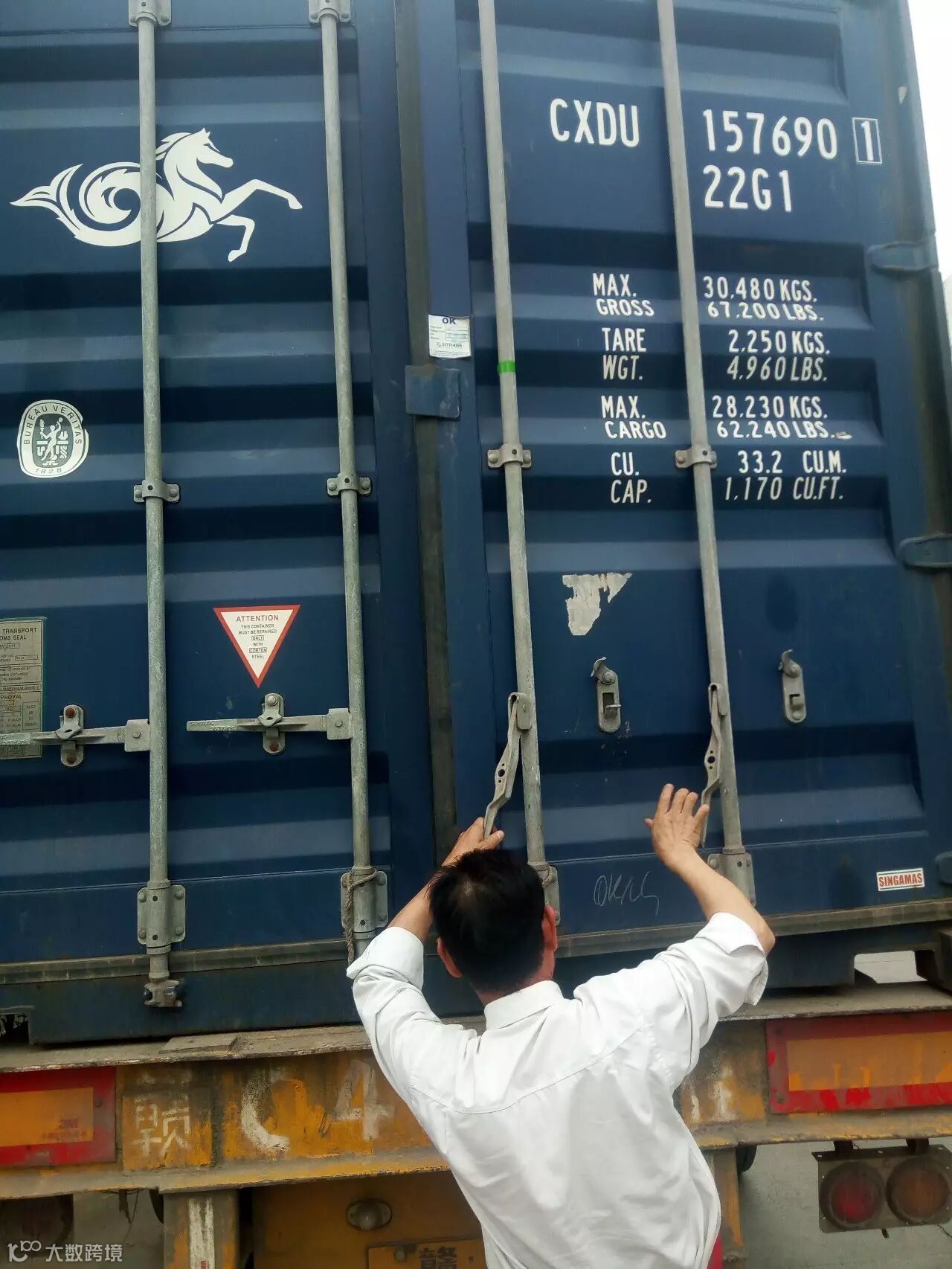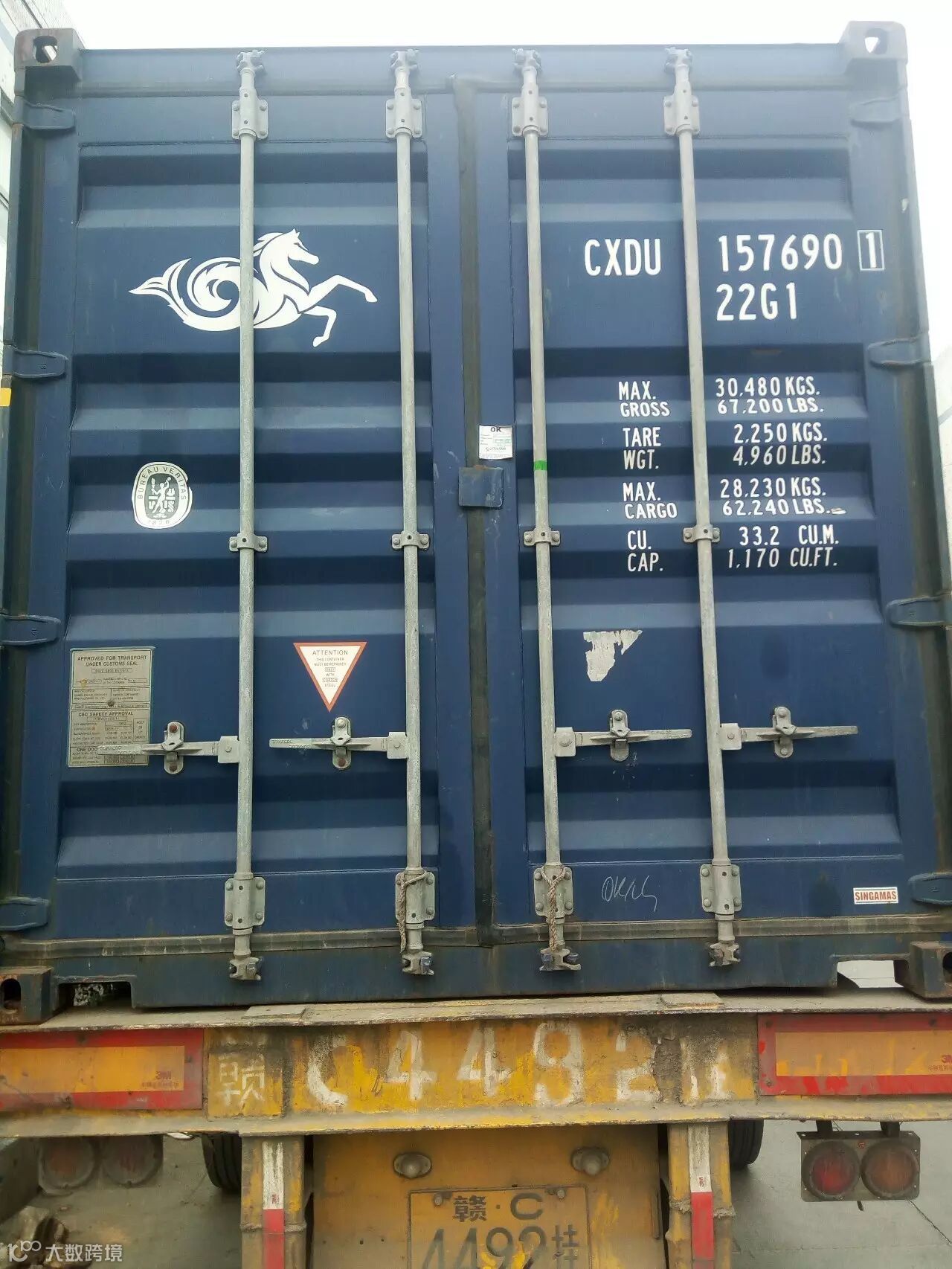 从新加坡刚报关完运来的货柜~