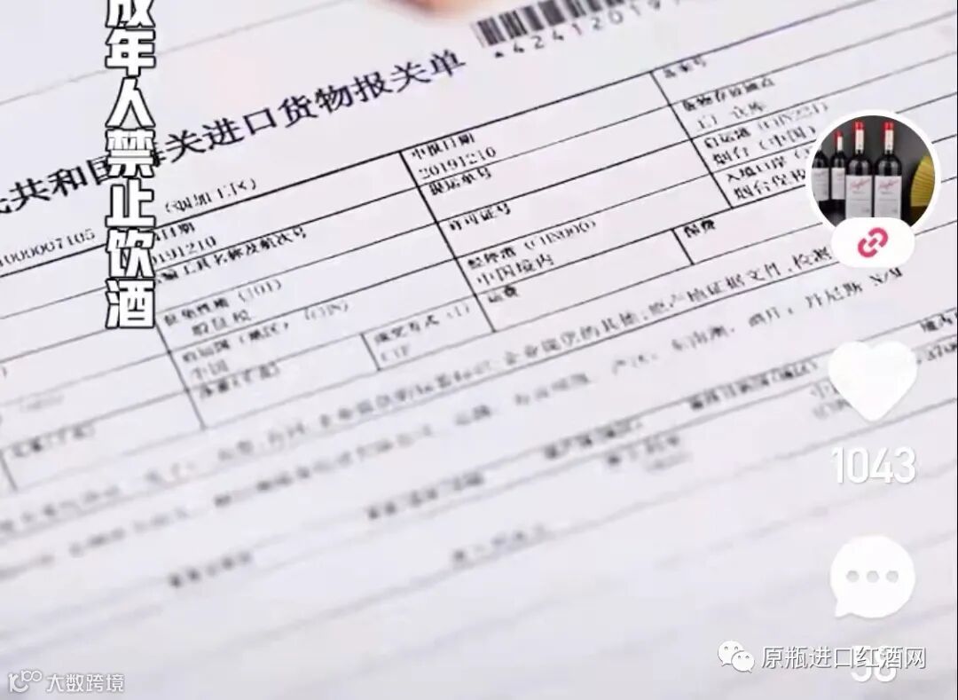 某直播的原瓶进口酒报关单,制造商为中国