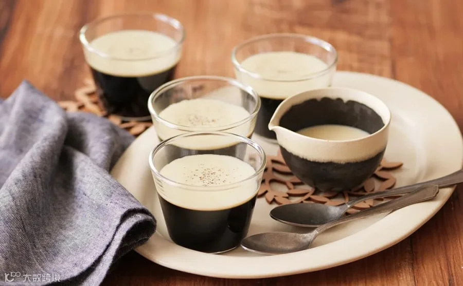 ④.将过滤好的咖啡液中加入①,再把砂糖加入其中,使其充分融化。将液体平分成四分,待余热散去后,在冰箱中冷却3小时以上使其凝固。