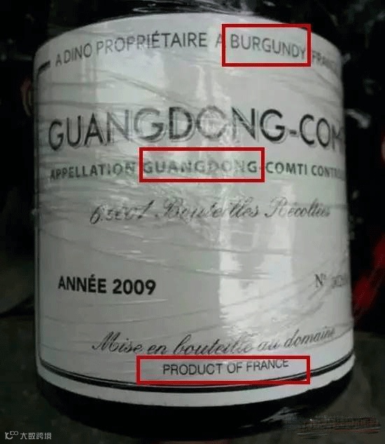 这款酒呢,相对上面的要稍微做得有诚意一点点,至少从酒标设计来看还是挺像的。不过仔细一看,法国勃艮第的广东酒...也不知道该说啥了...
