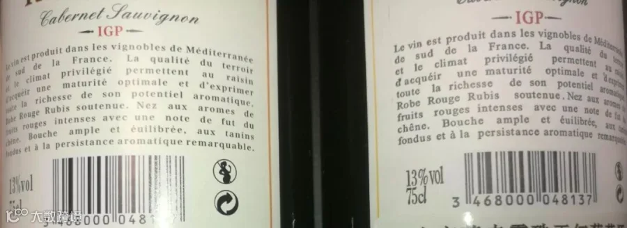 7看酒瓶背标国际条形码:从酒瓶背面标签上的国际条形码上可以判断原产国,如以3字打头的是法国产地,以8字开头的是西班牙产地,以9字打头的是澳州产地等等(但现很多国内罐装贴标酒也印国外条码),背标上的二维码可以扫出此产品的资料信息!
