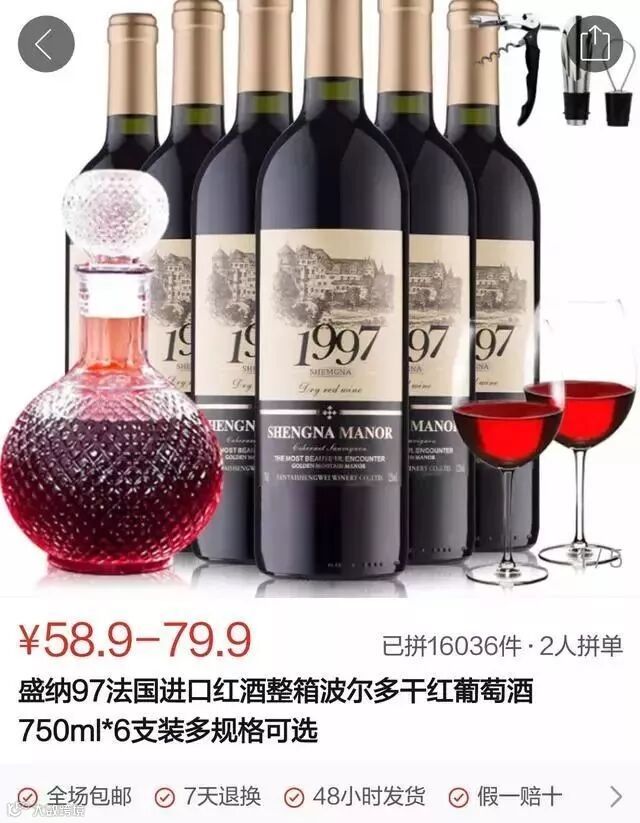 昨天一位许久不联系的朋友在群里发了一个某平台团购法国进口葡萄酒的链接,6支装58.9元!(58.9元6瓶,9.8一瓶还包邮)?还敢标榜自己是法国知名产区原瓶进口?也许有人会以为是促销活动才这么便宜,但事实真的如此吗?