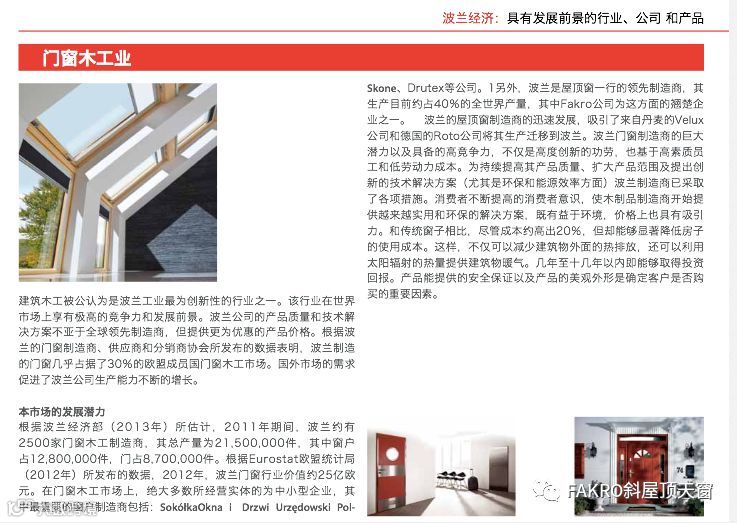 《波兰经济》评选最具有发展前景的行业、公司 和产品!对FAKRO公司在门窗木工业行业地位给予高度评价!