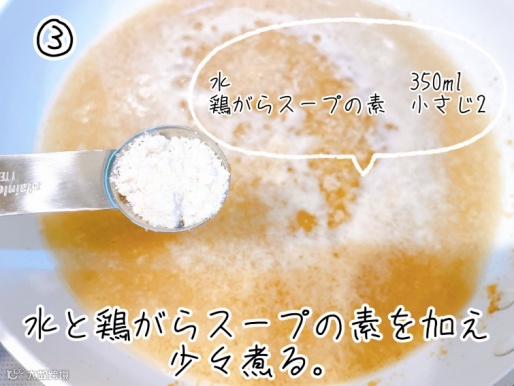 ③加入水350毫升水和鸡精2小勺开大火烧开。