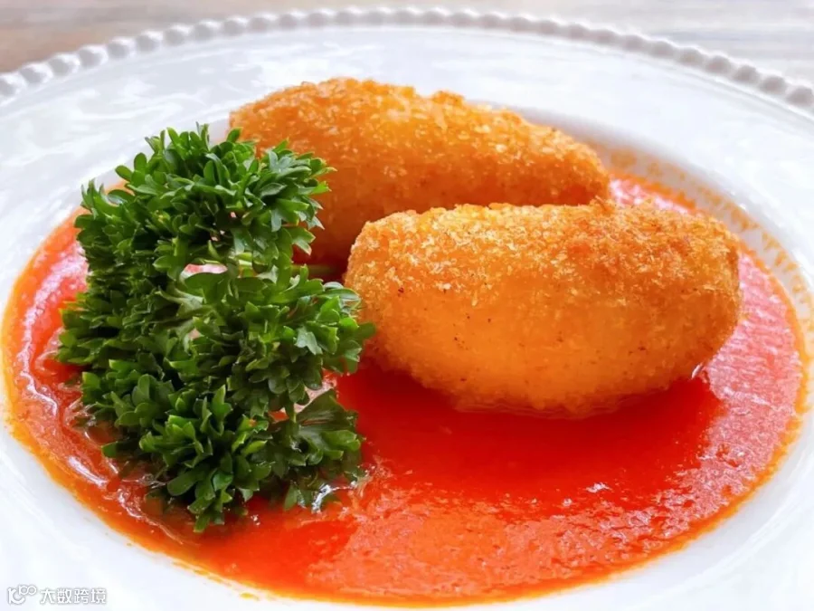 外层包裹具有松脆口感的面包粉。一口咬下,外层松脆,内层奶油混合浓浓螃蟹风味,口感顺滑。