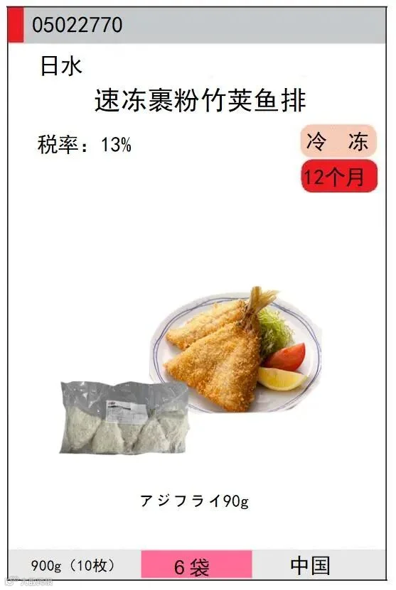 使用优质鲜中带甜的南美的白虾作为原料,松脆的面包糠包裹着的大虾,油炸后,蓬松香脆,虾肉厚实,口感弹牙,咔嚓咔嚓好吃得不得了。为方便料理店,每盒采用10个包装,使用更便利。