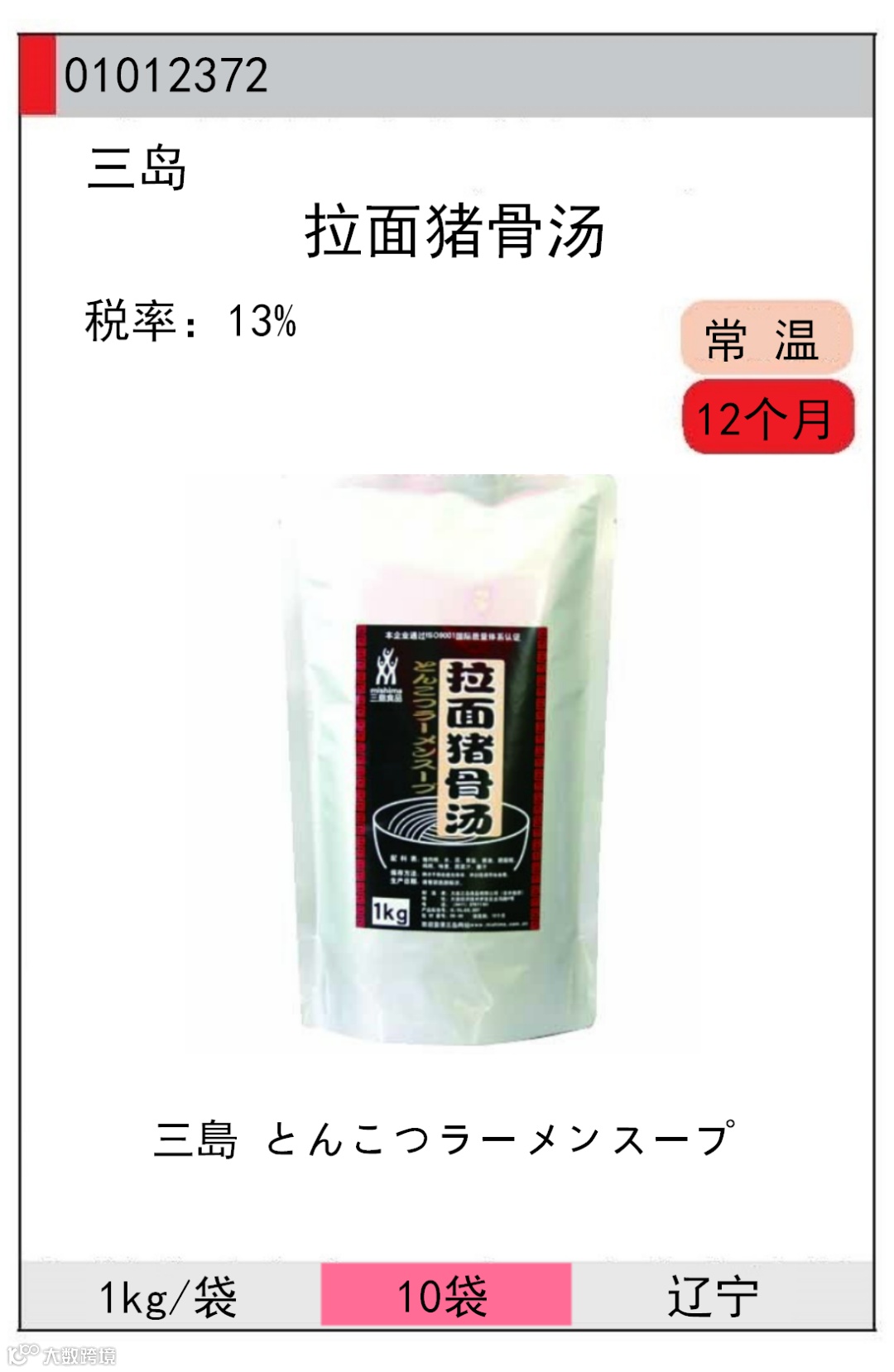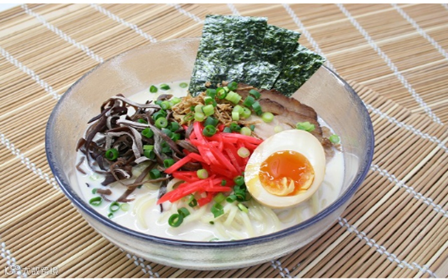 拉面猪骨汤复合调味料(とんこつラーメンスープ) 1包、 水 240ml、豆浆(豆乳) 120ml、冷冻拉面(冷凍ラーメン) 1块、溏心卤蛋(味付け半熟卵) 半个、木耳丝(きくらげスライス) 5g、调味红姜丝(紅しょうが赤)10g、拉面海苔(ラーメン用海苔) 1枚、日式叉烧(日式チャーシュー) 20g、油炸洋葱(フライドオニオン) 3g