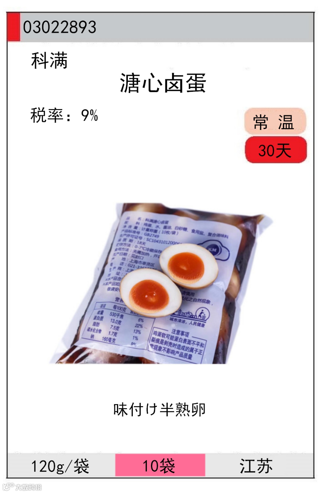 ② 叉烧用热水解冻、溏心卤蛋切成两半。