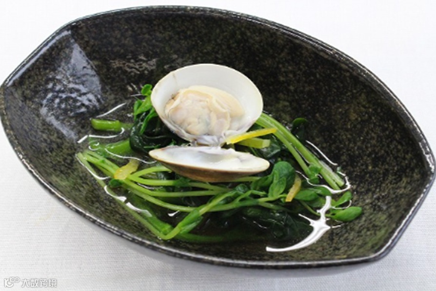 文蛤 1粒、菜花 15g、淡干海带 5g、料理清酒 5g、食用盐 3g、豆苗 6g、水200ml