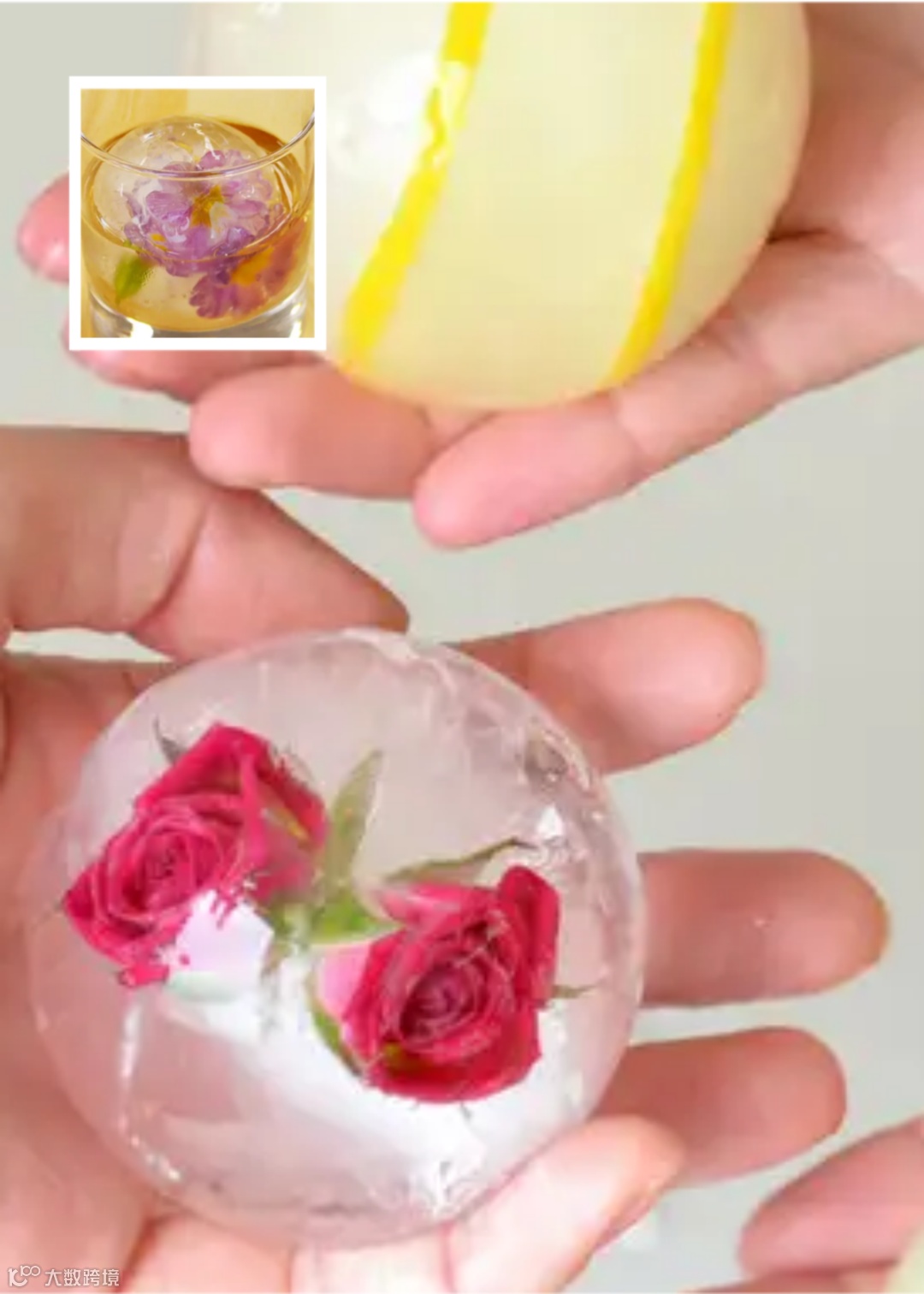 模具里先注入小半份的水,将花瓣放好后冻起来;