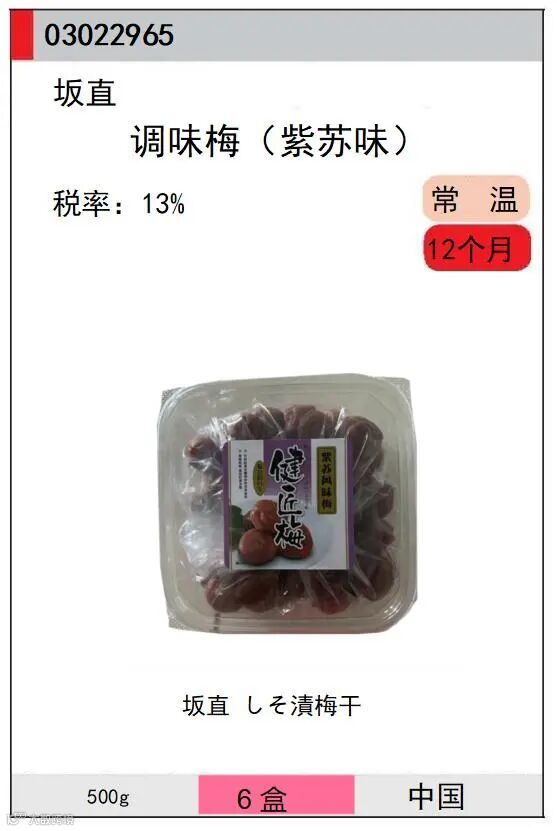 紫苏梅 3颗/うめぼし(しそ) 3個