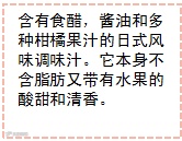 味滋康柑橘醋酱汁(味ぽん/AJIPON®)是一款含有食醋、酱油和多种柑橘果汁的日式风味调味汁。它采用味滋康自酿醋为原料,将酱油和醋的优点合二为一,由于本身不含脂肪,又带有水果的酸甜和清香,这也使之成为实现清爽料理的一个重要因素。即使少油也能做出味道既丰富又美味的佳肴。