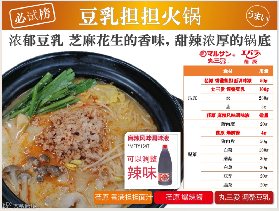 お好みに合わせて肉みそや麻辣风味调味液で辛さを調整することもおススメです。