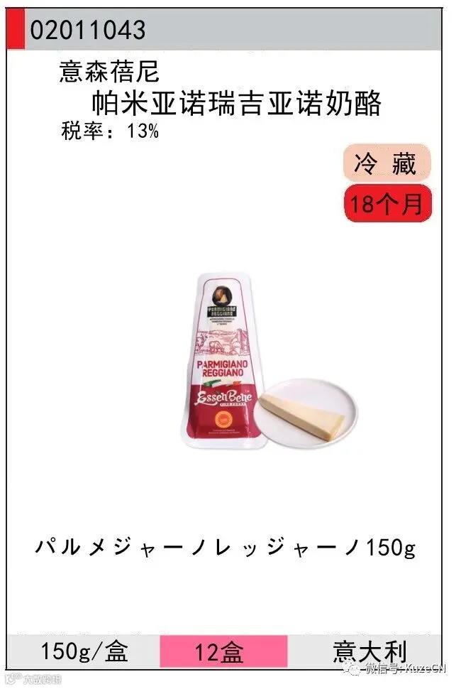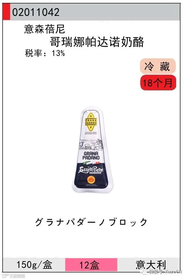 哥瑞娜帕达诺奶酪原产于意大利北部波河平原(Pianura Padana),具有原产地保护标志。哥瑞娜帕达诺奶酪由新鲜的半脱脂牛奶制成,营养价值高,富含钙和蛋白质,适合乳糖不耐受人群食用。