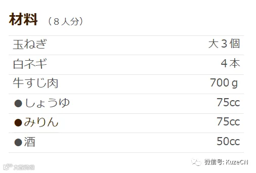 材料准备(8人份)