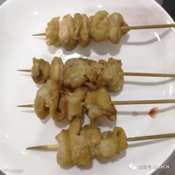 横膈膜串、猪心串、猪肝串烤大约7-8分钟。
