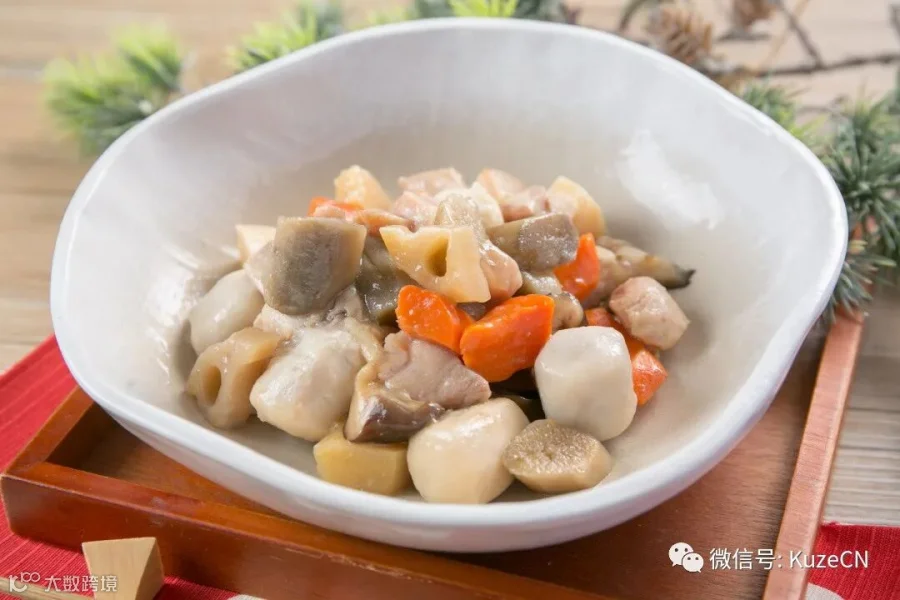 严选食材,颜色丰富。鸡肉的味道充分融入在料理之中,香甜可口。在日本,很久以前就有吃羊栖菜可以延年益寿的谚语。