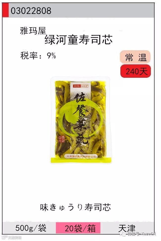 绿河童寿司芯--选用优质嫩黄瓜为原料,辅以姜、芝麻、高级酱油,口味咸鲜适中,口感爽脆是用来做寿司芯的首选。
