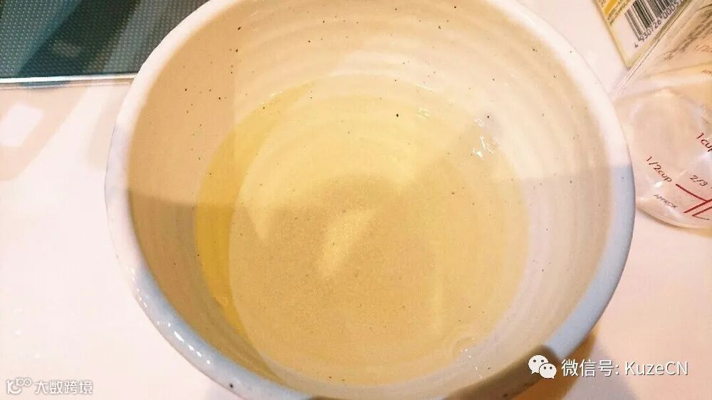 STEP2豆乳中加入溶化后的明胶,充分搅拌后放入冷藏柜静置成型。