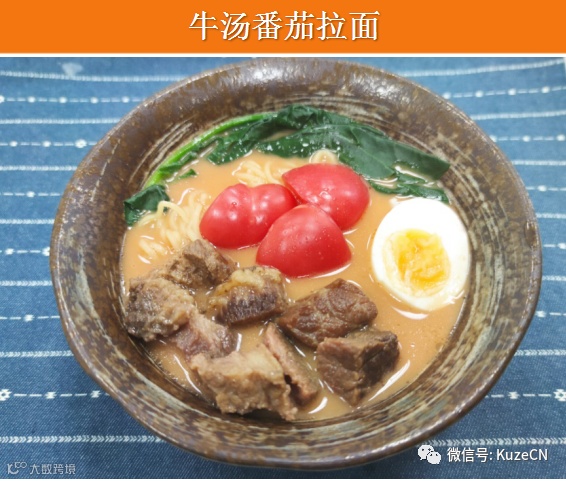 d 其他食材:番茄1/2个,牛腩60g,煮蛋1/2个,菠菜10g