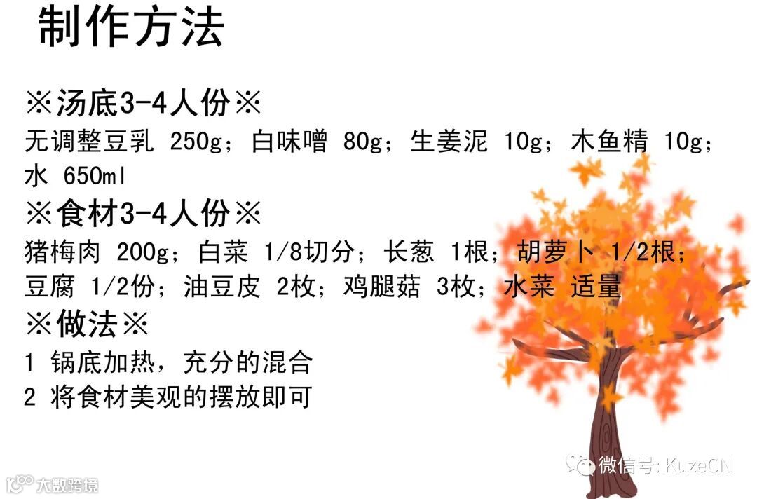 丸三調整豆乳----250g;丸三白味噌80g;すりおろし生姜10g;だしの素10g;水650ml