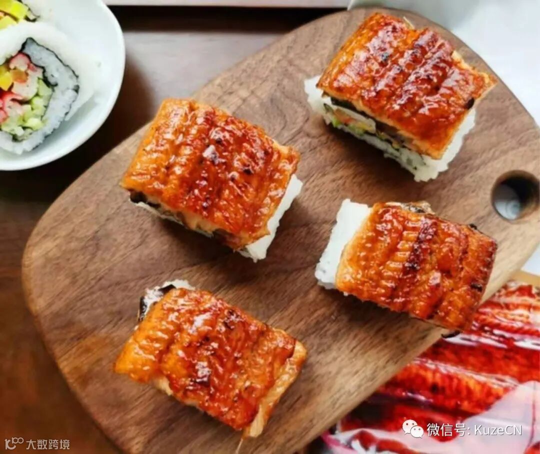 蒲烧鳗鱼 一条、米饭 适量、葱花 适量、海苔等 适量