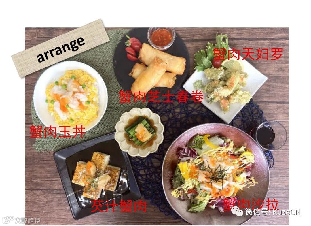菜品参考例:蟹肉玉丼、蟹肉芝士春卷、蟹肉天妇罗、芡汁蟹肉等。
