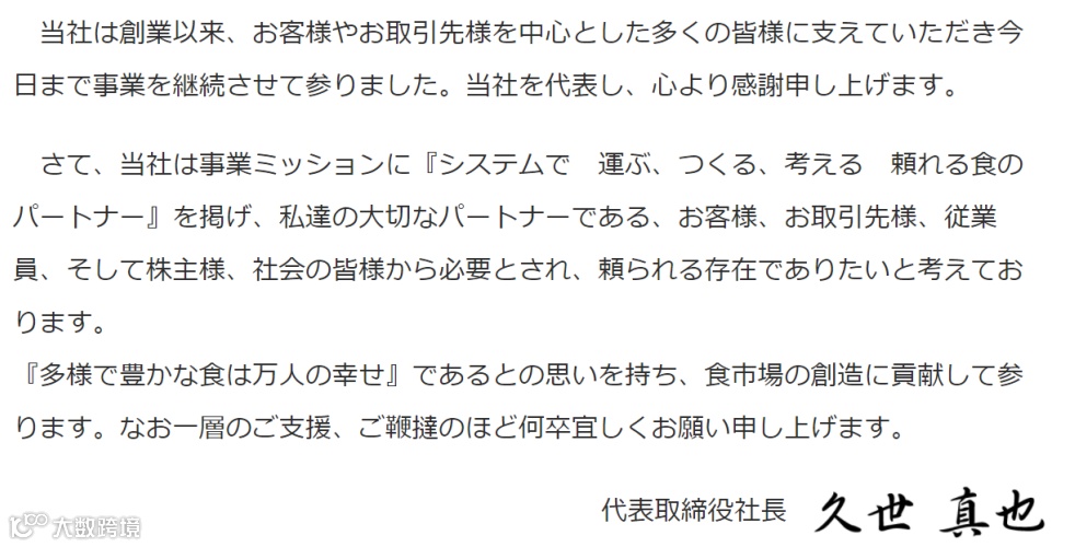 顾客首选企业为目标,为顾客愉悦的饮食生活以及丰富多彩的餐饮行业的发展做出贡献。