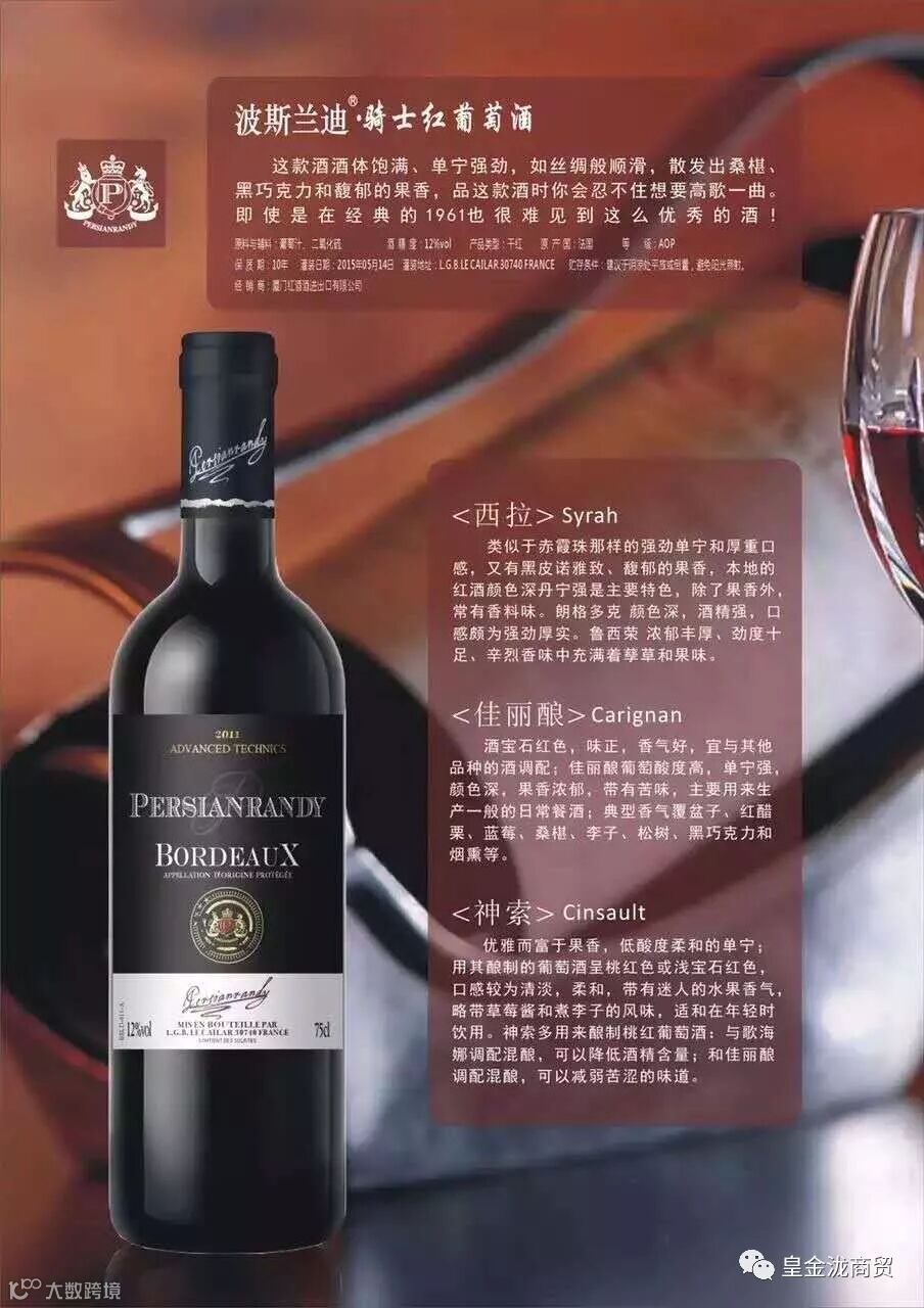 色泽呈宝石红色,口感清新而纯正,具有高档红酒应有酸涩度且适中,口感细腻 优雅,余韵深刻而悠长。