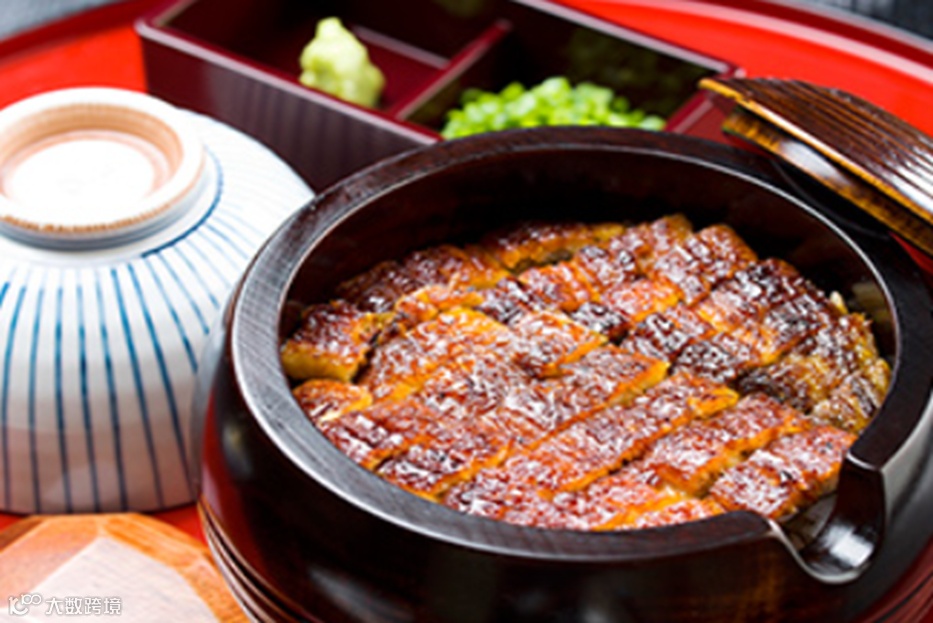 ③ 鳗鱼炙烤后装盘,依次放入牛丼食材、山药泥和锦丝蛋丝红姜丝等食材即可。