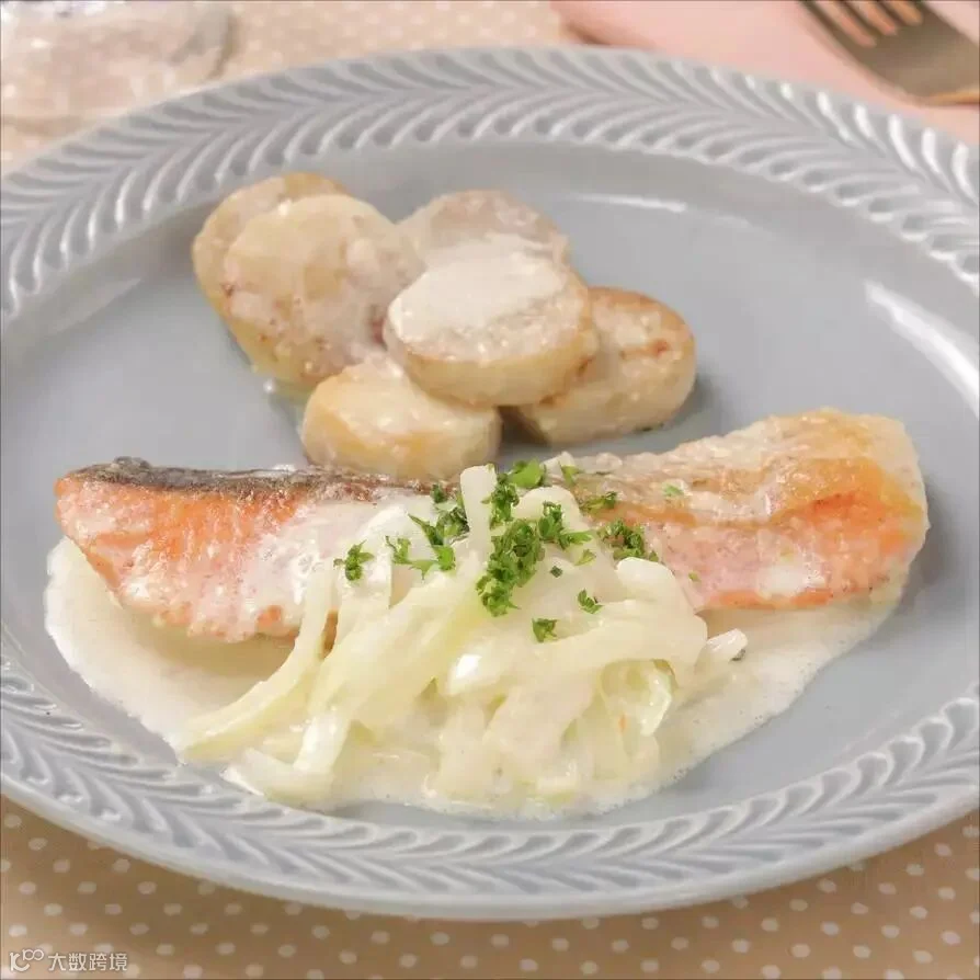 鲑鱼 2片,土豆4个,洋葱1/4个,牛奶150ml,黄油10g,芝士粉2大勺,低筋面粉1小勺,盐少许,胡椒少许,欧芹碎适量