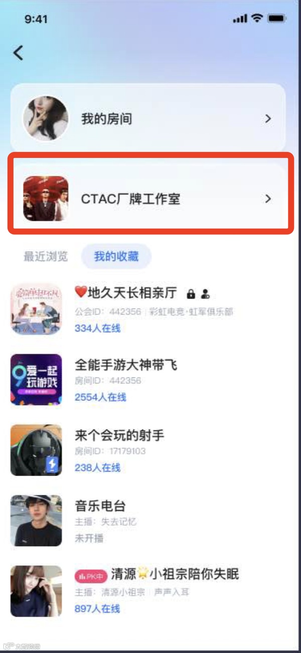 1.消息→点击【我的房间】→【xx厂牌/社团】