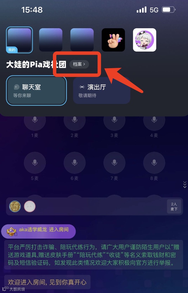 功能上线后在专属房间的档案页内即可查看自己社团/厂牌所获得积分,入口如下: