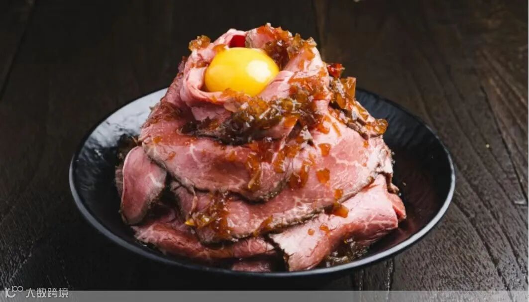 1.将烤牛肉切片。在碗中盛入米饭,然后放上烤牛肉。