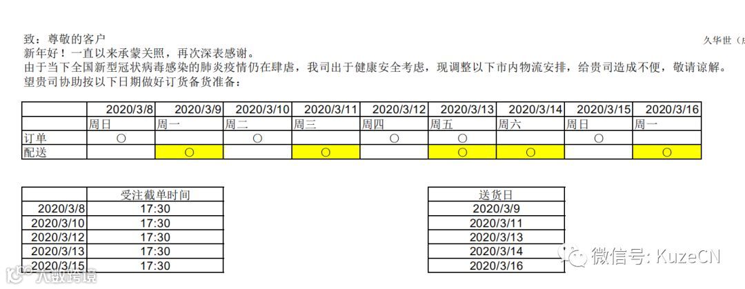 感谢广大客户一直以来对久华世的关注与支持,为配合政府要求,疫情期间我司订货时间物流配送作相应调整,具体如下。给您带来不便请给予谅解。