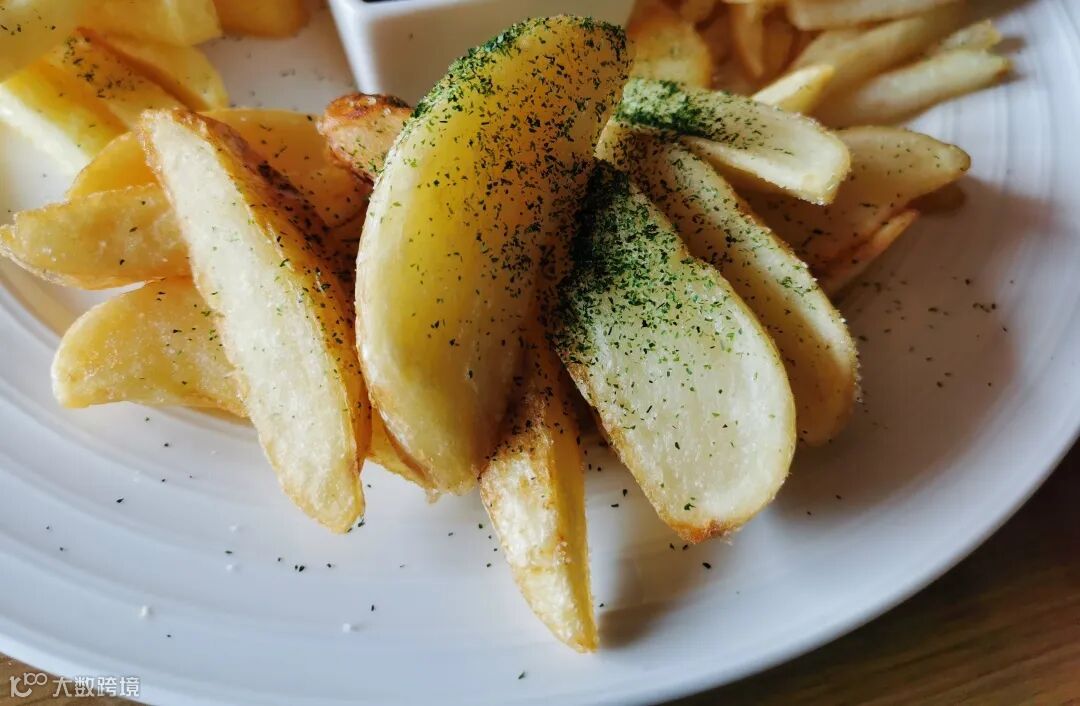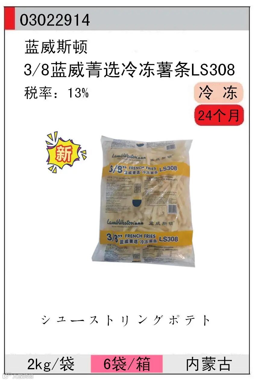 3/8切粗薯,外表金黄酥脆,内里糯糯的口感,土豆风味浓郁。