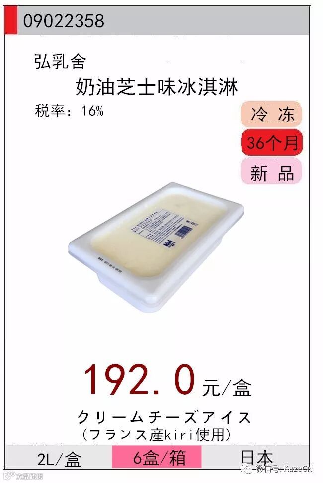 使用法国kiri的芝士制作而成的奶油芝士味冰激凌。希望吃到这款冰激凌的人更加的幸福。味道纯正柔和,容量大,适合在餐饮以及作为家庭装进行销售。