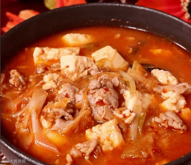 ④炒至泡菜中渗出的水分完全蒸发后,倒入酱油,让酱油均匀地裹在食材上,即可完成。根据个人喜好,可以撒上一些白芝麻后享用!