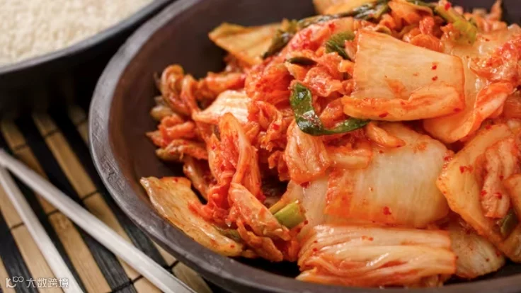 ③当肉变色后,加入洋葱,炒至洋葱变软,然后加入泡菜和韭菜,充分翻炒均匀。