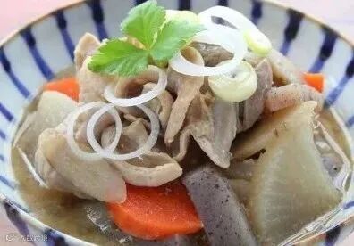 3 加入白萝卜、牛蒡、B 味醂1大勺、砂糖1大勺、酱油2大勺,盖上锅盖,继续炖煮15分钟左右。加入味噌后关火,让其稍微冷却。