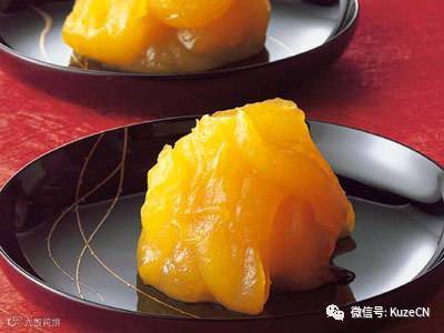 用栗子泥和糖渍栗子做成,金灿灿当然是招财进宝,富贵吉祥之意。